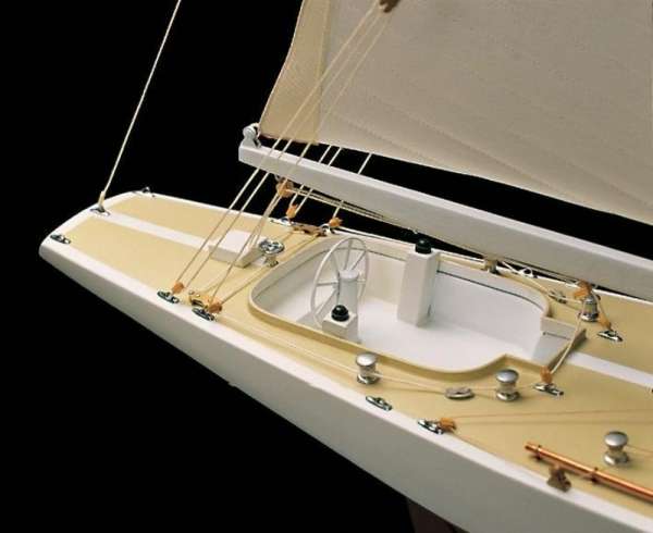 Model jachtu Columbia w skali 1:35, model do sklejania i pomalowania częściowo drewniany, kadłub z wytrzymałego tworzywa - Amati nr 1700/81 Columbia US Defender 1958 - model jakości muzealnej, wysoka jakość materiałów