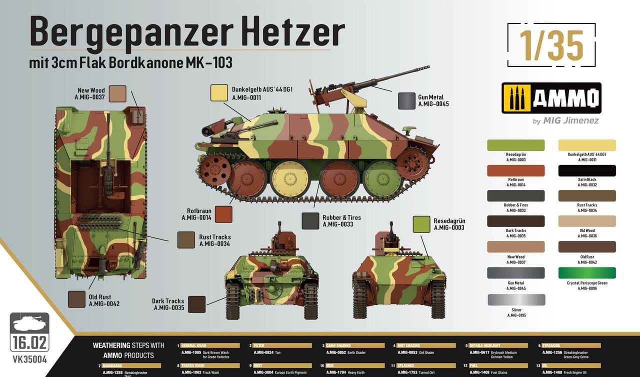 16.02 VK35004 Bergepanzer Hetzer mit 3cm Flak Bordkanone MK-103 1/35