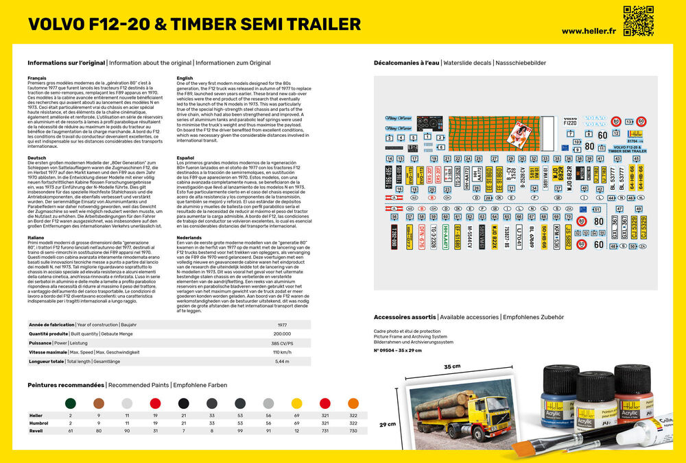 Heller 81704 Volvo F12-20 Truck & Timber Semi Trailer 1/32