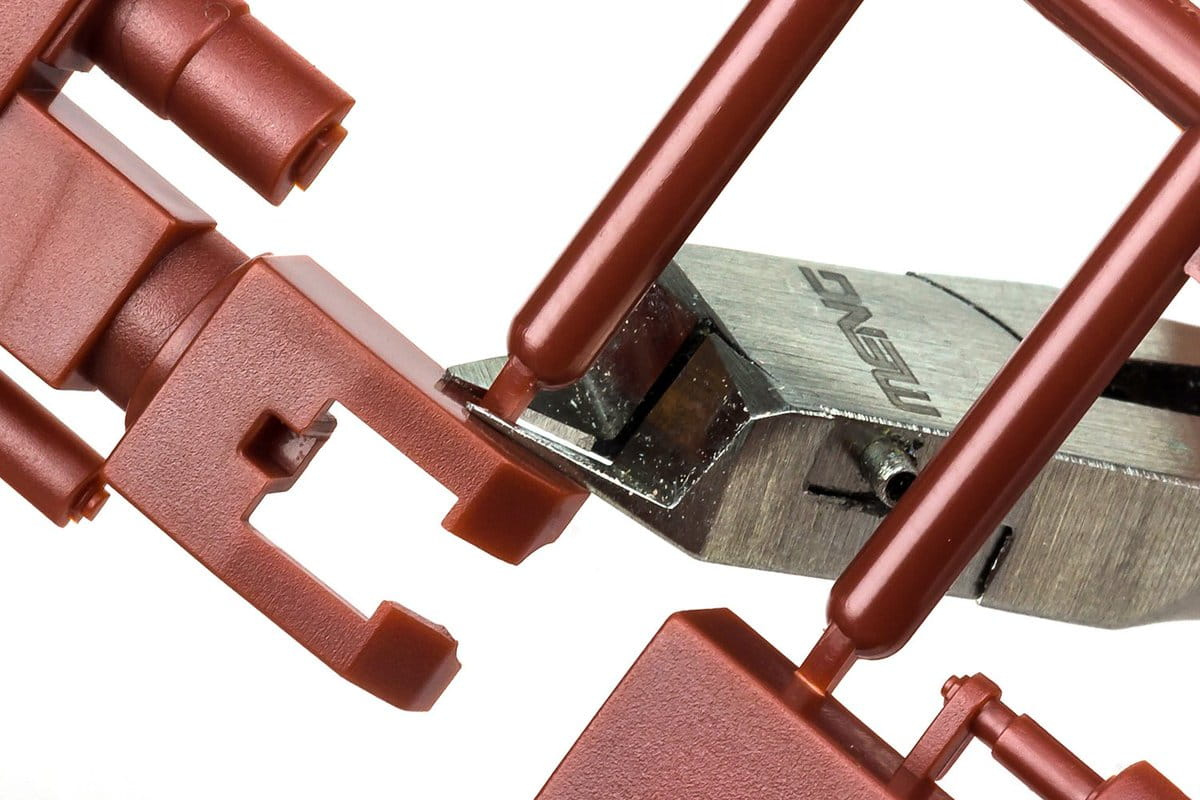 Profesjonalne cążki modelarskie wykonane z wysokiej jakości stali narzędziowej, wyposażone w jedno ostrze typu single-edge. Dzięki szerokiemu trzpieniowi zamiast tradycyjnego nitu, narzędzie cechuje się znacznie wyższą trwałością i precyzją cięcia. Cienkie, płasko schodzące się końcówki umożliwiają bardzo dokładne oddzielanie elementów tuż przy ramce, minimalizując potrzebę dalszej obróbki.