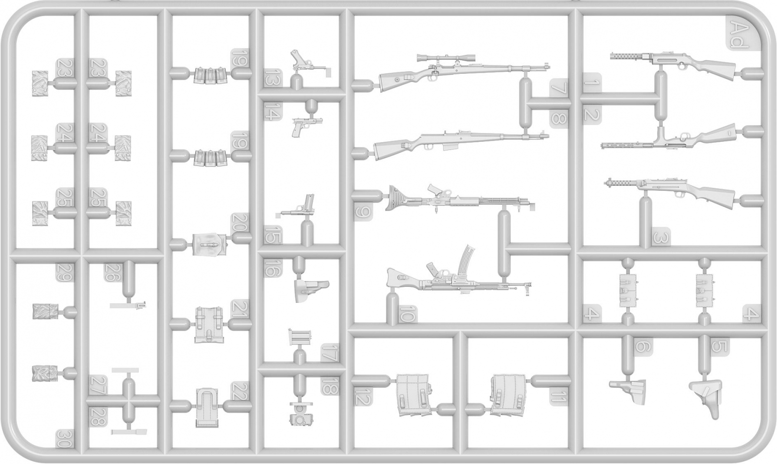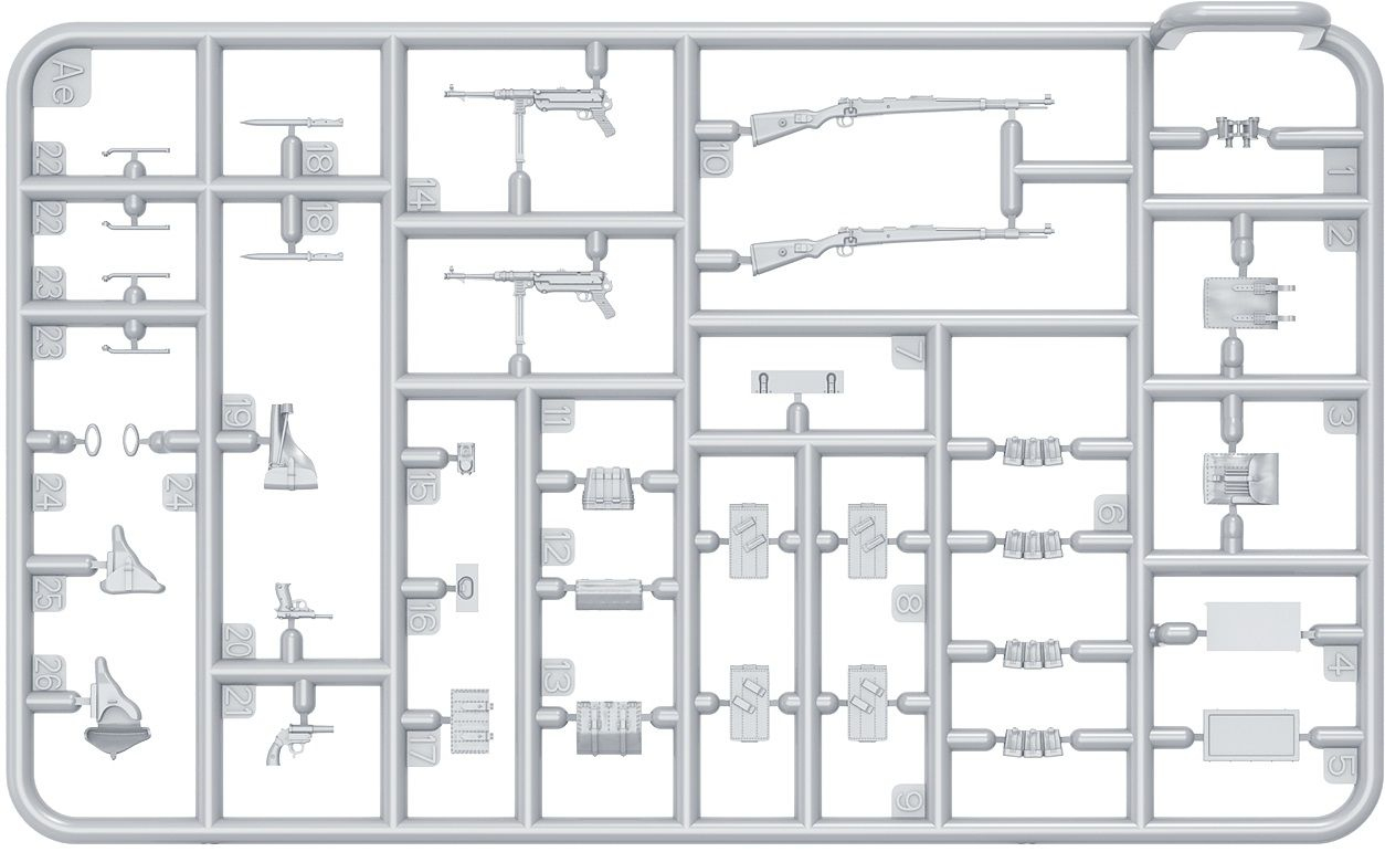 W komplecie znajdują się 4 niemieckie figurki i ich ekwipunek.