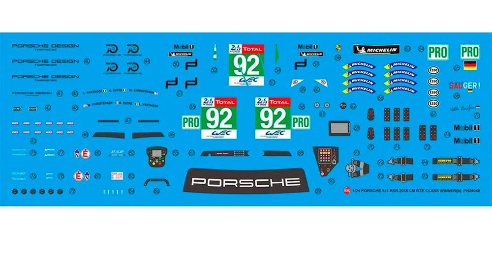 Samochód Porsche 911 RSR 2018 LM GTE Class Winner do sklejania i pomalowania z firmy NuNu nr katalogowy 24040.