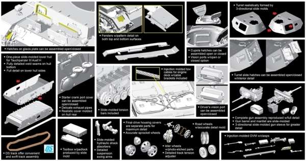 Model czołgu Tauchpanzer III Ausf. H posiada m.in.: