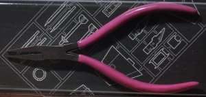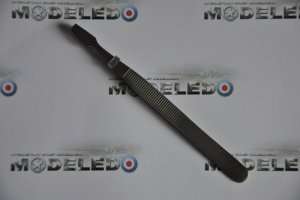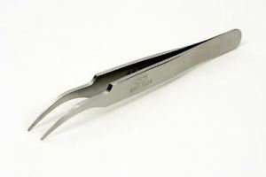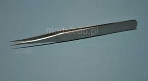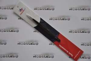 Precyzyjna modelarska pęseta z zaostrzonymi końcami, wykonana ze stali nierdzewnej.