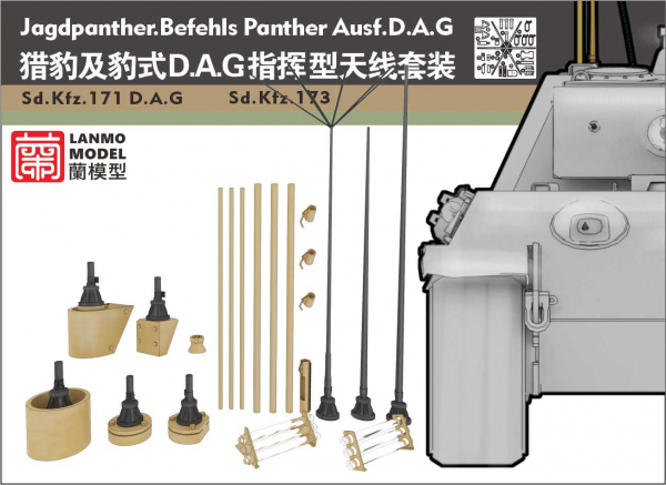 Zestaw anten do czołgów Jagdpanther i Befehls-Panther Ausf. D/A/G z firmy LANMO Model nr katalogowy 35012.