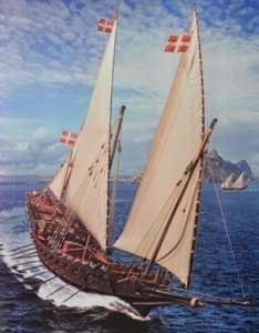 Model posiada m.in. żagle z plastiku do wycięcia, nici, kalkomanie.