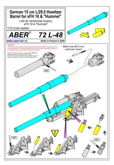 Aber 72L48 Lufa 15 cm L/29,5 do niemieckiej haubicy Sfh 18 & Hummel w skali 1/72