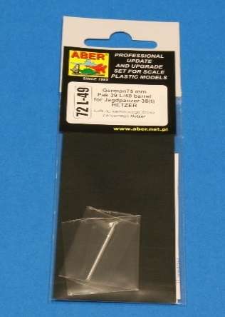 Zestaw L-49 (72L49) zawiera 1 lufę 75 mm Pak 39 L/48 do modelu niemieckiego działa pancernego 38(t) Hetzer w skali 1/72.