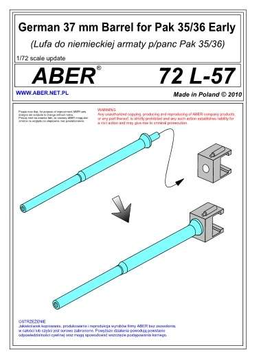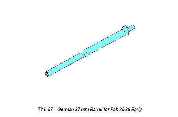 Zestaw L-57 (72L57) zawiera 1 lufę 37 mm do modelu niemieckiej armaty przeciwpancernej Pak 35/36 (wczesna) w skali 1/72.