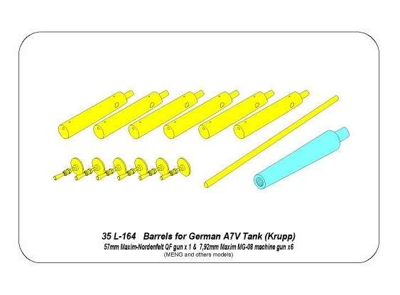 Zestaw 35L-164 zawiera lufy do niemieckiego czołgu A7V (Krupp) z okresu I wojny światowej.