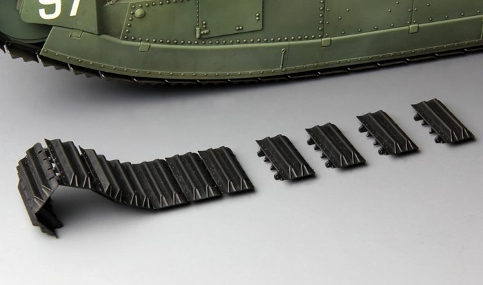 Model zawiera m.in. elementy fototrawione, gąsienice z pojedyńczych ogniw z tworzywa, różne wersje oznakowań.