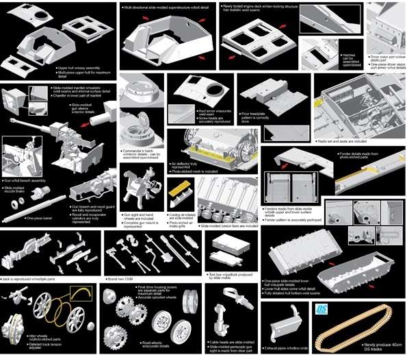 Model samobieżnego działa Sturmgeschutz III zawiera m.in.: