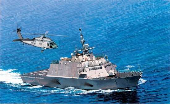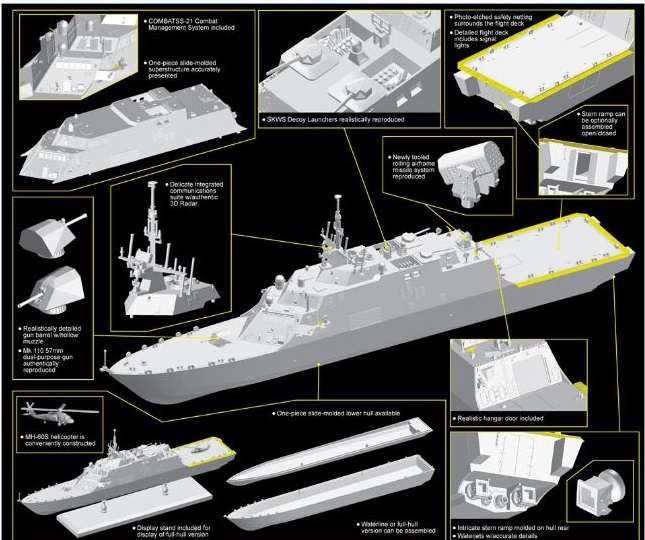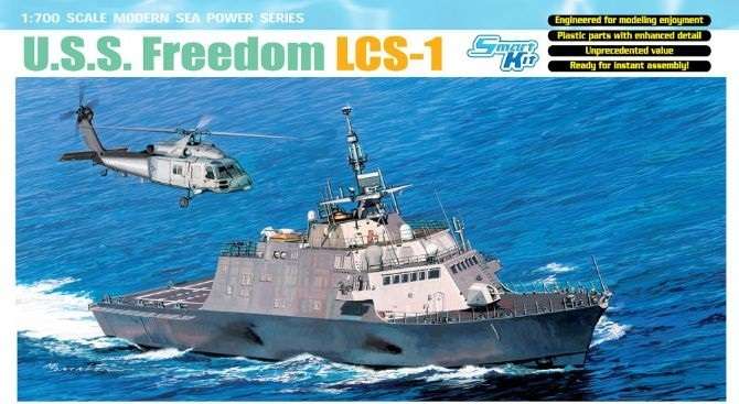Plastikowy model amerykańskiego okrętu USS Freedom LCS-1, model statku w skali 1:700, Dragon 7095.