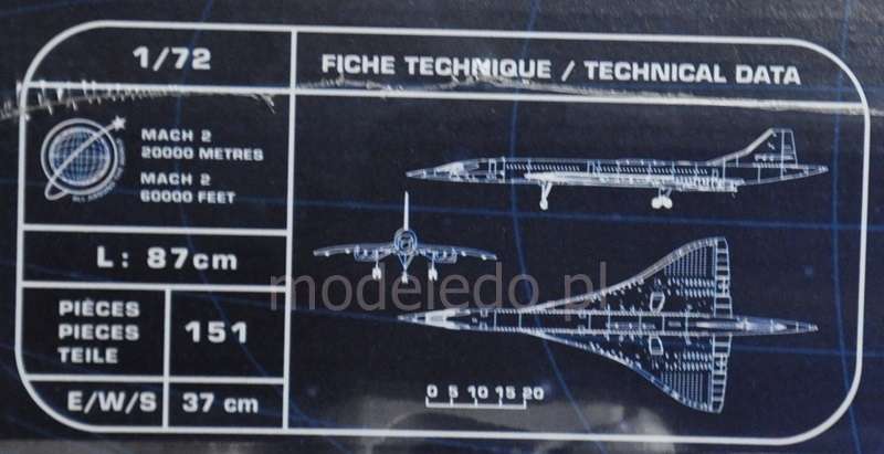 Zestaw modelarski - naddźwiękowy samolot pasażerski o napędzie turboodrzutowym Concorde.