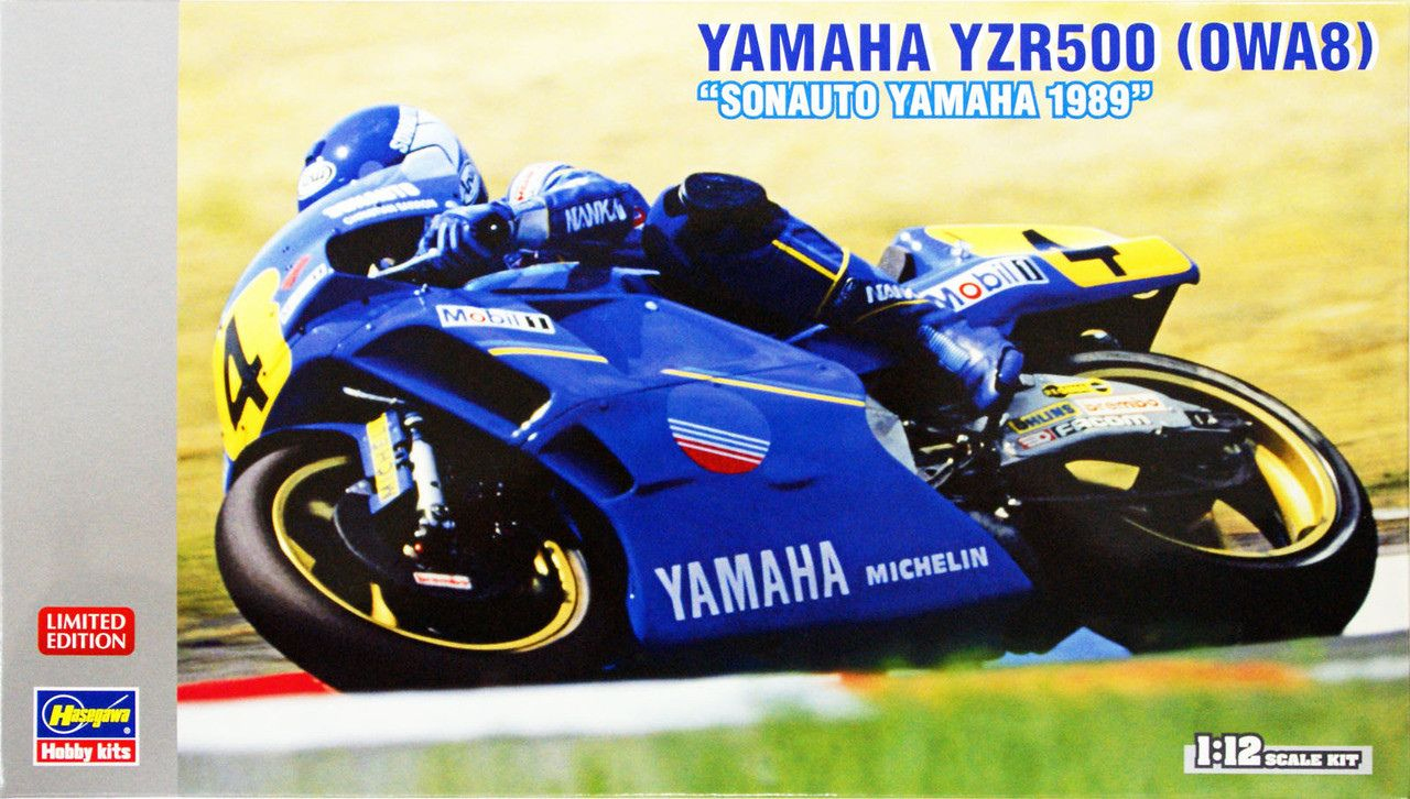 Motocykl Yamaha YZR500 (Sonauto Yamaha 1989) do sklejania i pomalowania z firmy Hasegawa nr katalogowy 21709.