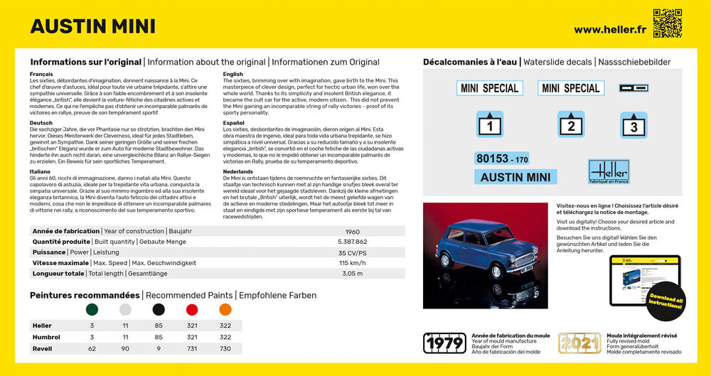 Samochód Austin Mini do sklejania i pomalowania z firmy Heller nr katalogowy 80153.