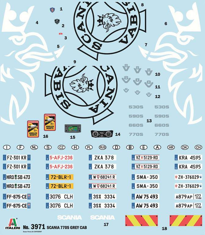 Italeri 3971 Scania 770S 4x2 Normal Roof Grey Cab 1/24