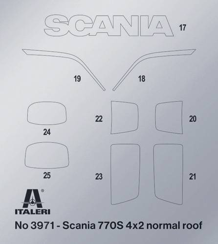 Model ciężarówki Scania 770S 4x2 Normal Roof Grey Cab do sklejania i pomalowania z firmy Italeri nr katalogowy 3971.