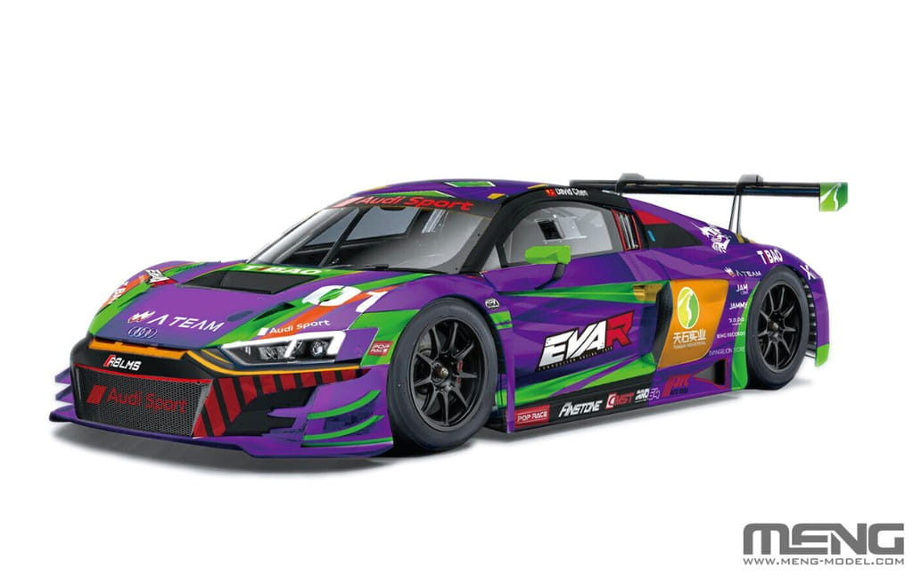 Niemieckie sportowe auto Audi R8 LMS EVA RT Test Type-01 TSRT R8 do sklejania i pomalowania z firmy Meng nr katalogowy CS008.