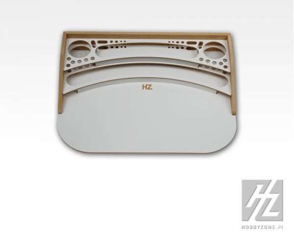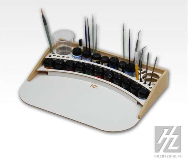 Mały modelarski stolik do malowania figurek i modeli. Stolik Hobby Zone SDM1b z otworami na farby, pędzle, narzędzia i kubki.