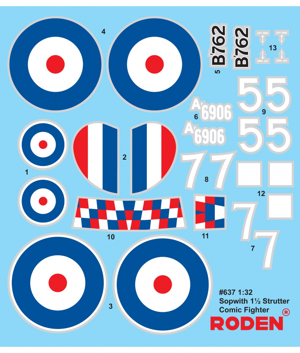 Model brytyjskiego dwupłatowca Sopwith 1 1/2 Strutter do sklejania i pomalowania z firmy Roden nr katalogowy 637.
