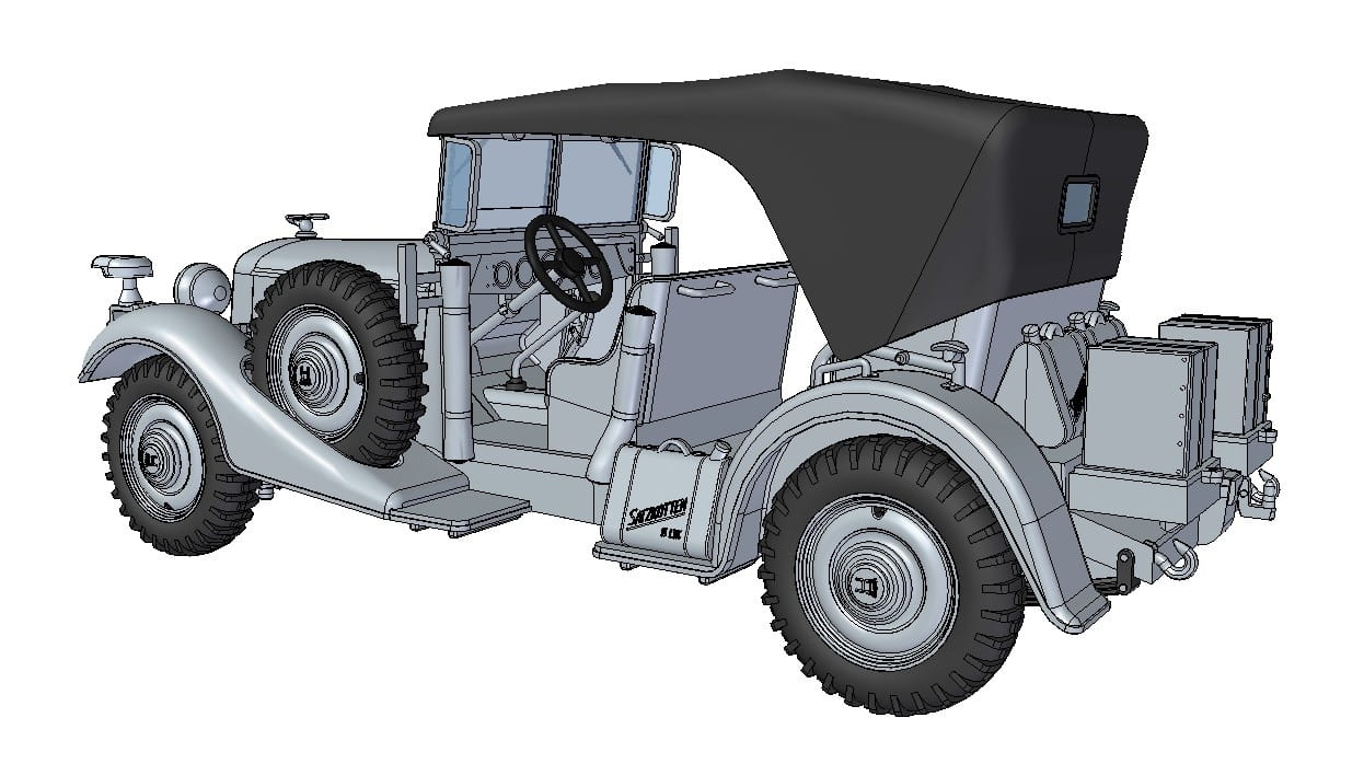 Niemiecki pojazd Horch V8 Type 830R do sklejania i pomalowania z firmy Roden nr katalogowy 825.