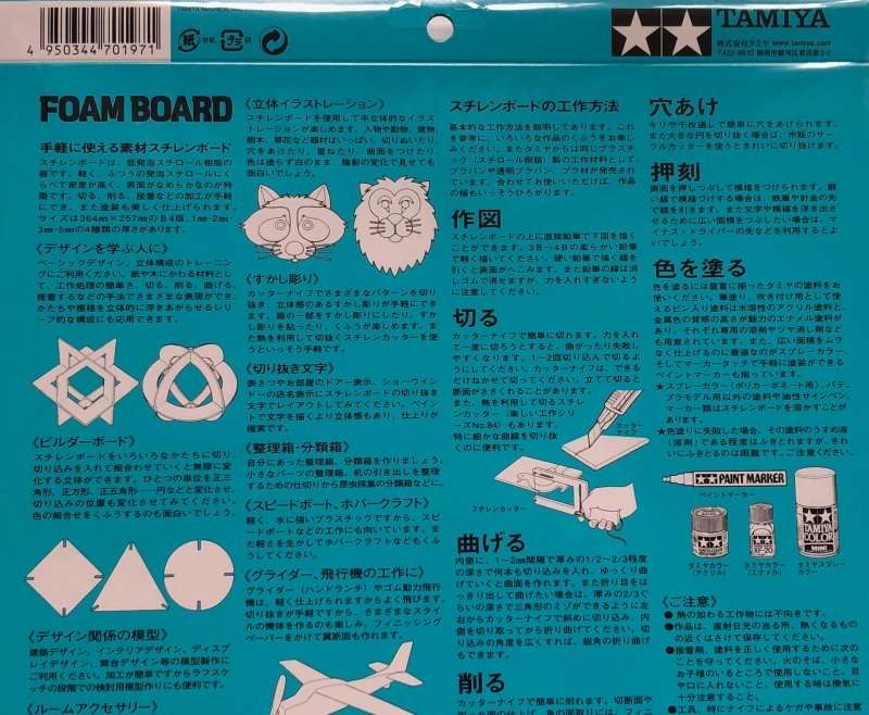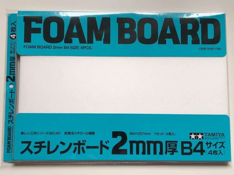 Piankowe płyty o grubość 2 mm i wymiarze 364 x 257 mm (B4) do różnych projektów modelarskich i szkolnych, tworzenia dioram i makiet. Zestaw Tamiya nr 70197 zawiera 4 płyty.