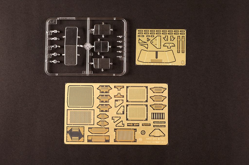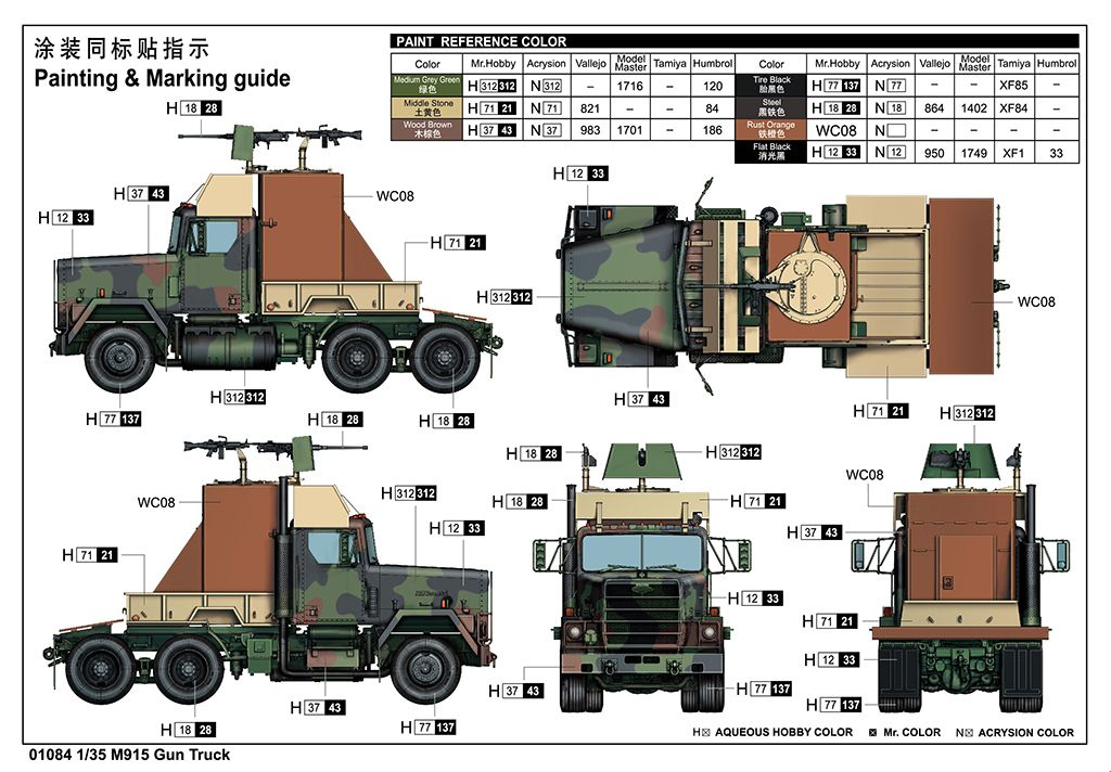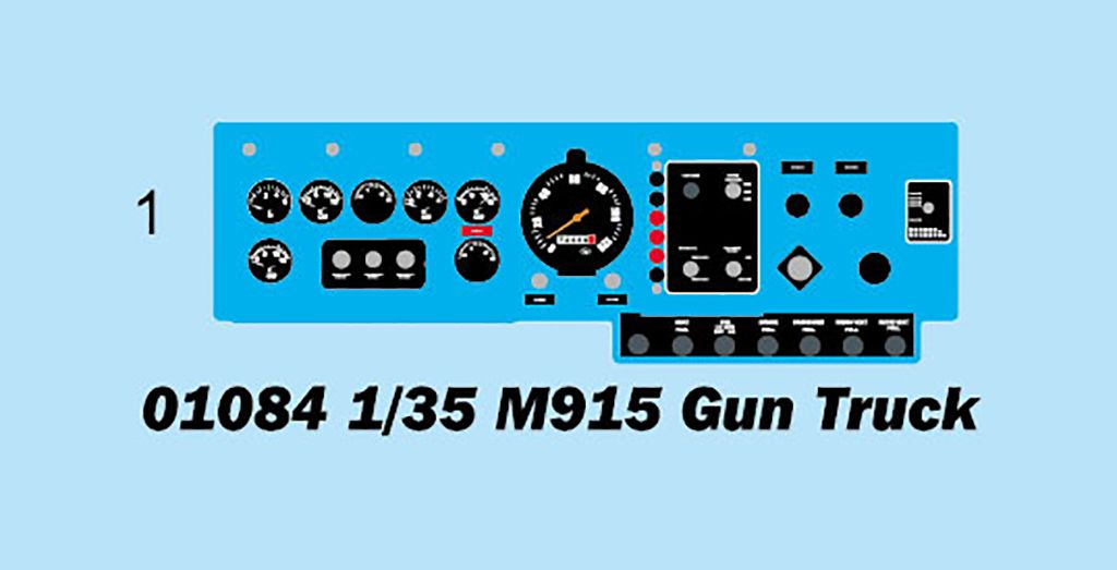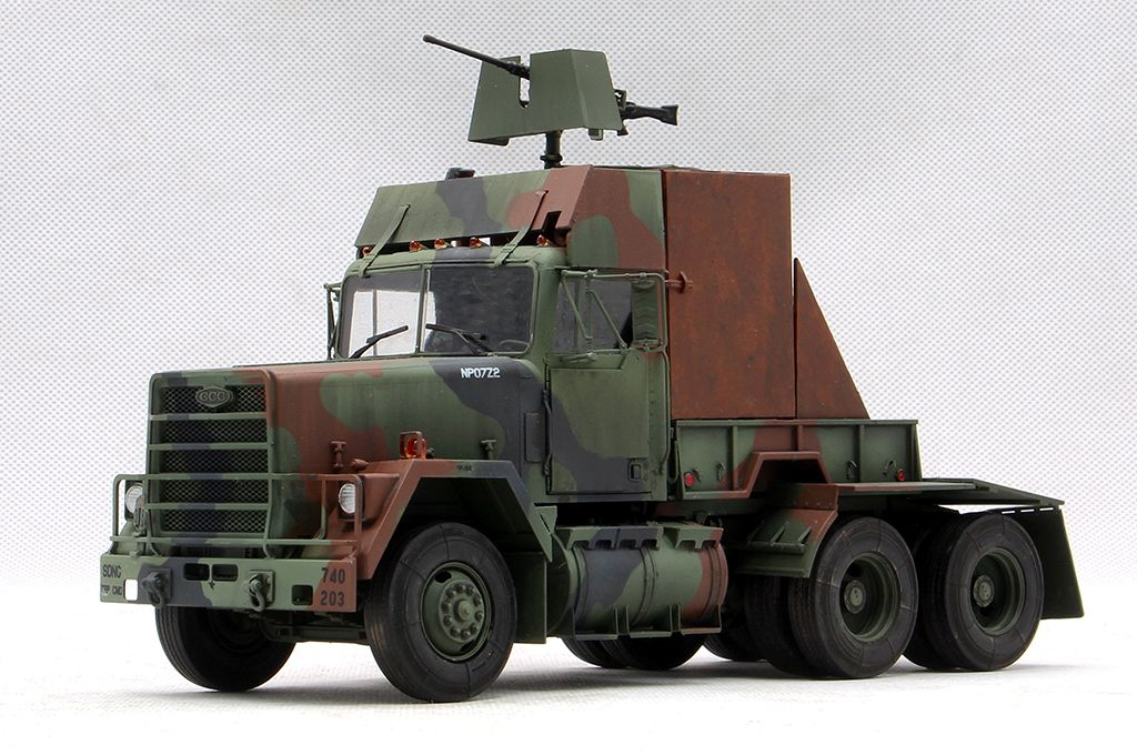 Model ciężarówki M915 z karabinem maszynowym i nadbudówką do sklejania i pomalowania z firmy Trumpeter nr katalogowy 01084.