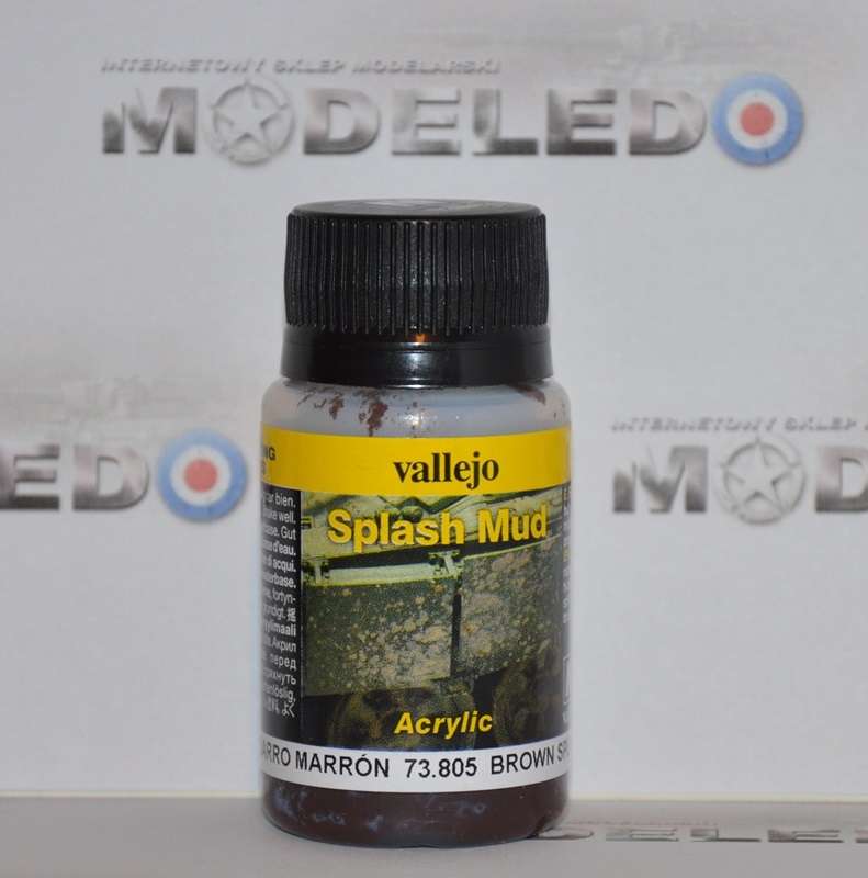 Preparat Vallejo 73805 - efekt ciemnego brązowego błota i gliny, charakterystyczne dla żyznych, wilgotnych terenów, charakterystycznych dla zachodniej części Europy oraz krajów śródziemnomorskich.