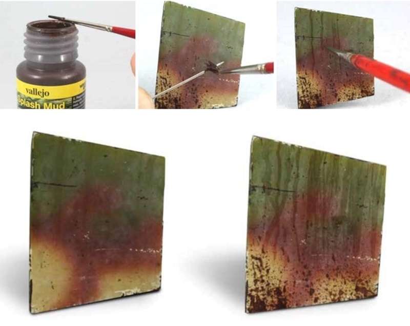 Efekt ten można uzyskać poprzez nadmuch powietrza z aerografu nad pędzlem nasączonym w preparacie Splah Mud, z niewielkiej odległości od modelu i na określonym obszarze.