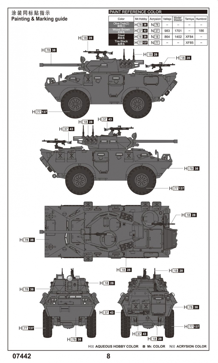 Model amerykańskiego pojazdu LAV-150 z działkiem 90mm do sklejania i pomalowania z firmy Trumpeter nr katalogowy 07442.