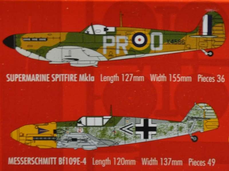 Zestaw modelarski - brytyjski myśliwiec Supermarine Spitfire Mk.Ia oraz niemiecki samolot myśliwski Messerschmitt Bf109E-4.