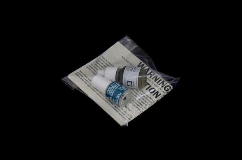 Klej modelarski do plastiku, oraz farby i pędzelem znajdują się w zestawie.