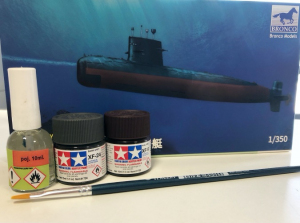 Plastikowy model okrętu podwodnego do sklejania i pomalowania.